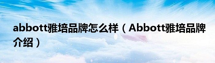 大家好,小源来为大家解答以上问题。abbott雅培品牌怎么样,Abbott雅培品牌介绍很多人还不知道,现在让我们一起来看看吧!