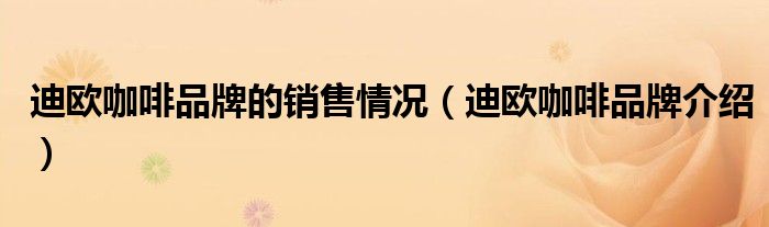 迪欧咖啡品牌的销售情况(迪欧咖啡品牌介绍)