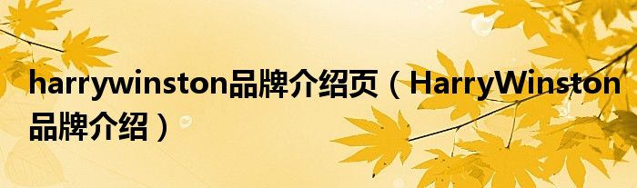 大家好,小源来为大家解答以上问题。harrywinston品牌介绍页,HarryWinston品牌介绍很多人还不知道,现在让我们一起来看看吧!