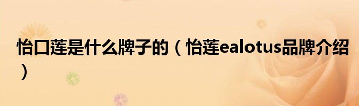 大家好,小源来为大家解答以上问题。怡口莲是什么牌子的,怡莲ealotus品牌介绍很多人还不知道,现在让我们一起来看看吧!
