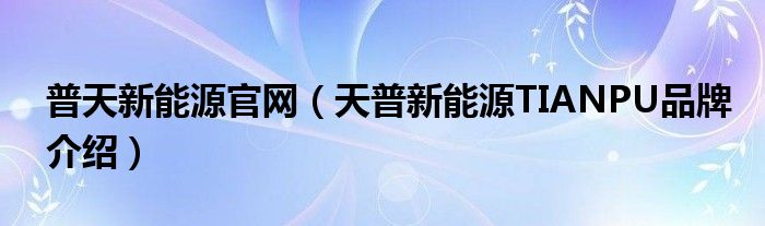大家好,小源来为大家解答以上问题。普天新能源官网,天普新能源TIANPU品牌介绍很多人还不知道,现在让我们一起来看看吧!