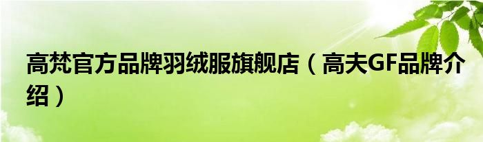 大家好,小源来为大家解答以上问题。高梵官方品牌羽绒服旗舰店,高夫GF品牌介绍很多人还不知道,现在让我们一起来看看吧!