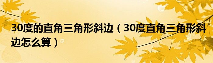关于30度的直角三角形斜边,30度直角三角形斜边怎么算这个很多人还不知道,今天菲菲来为大家解答以上的问题,现在让我们一起来看看吧!