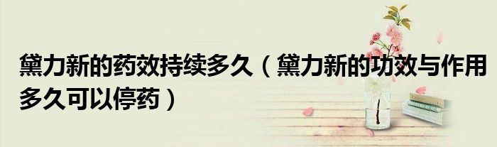 黛力新的药效持续多久(黛力新的功效与作用多久可以停药)