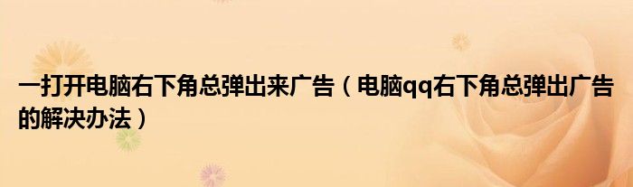 大家好,今天小悦来为大家解答以上问题。一打开电脑右下角总弹出来广告,电脑qq右下角总弹出广告的解决办法很多人还不知道,现在让我们一起来看看吧!