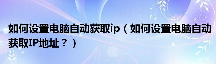 如何设置电脑自动获取ip(如何设置电脑自动获取IP地址?)