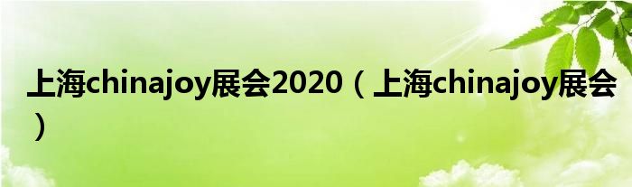 大家好,雨雨来为大家解答以上问题,上海chinajoy展会2020,上海chinajoy展会很多人还不知道,现在让我们一起来看看吧!