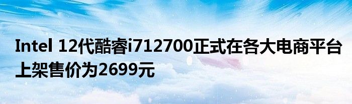 2022年1月14日整理发布:今天,Intel 12代酷睿i7-12700正式在各大电商平台上架,售价为2699元。