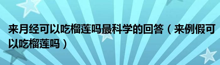 大家好,linda来为大家解答以上的问题。来月经可以吃榴莲吗最科学的回答,来例假可以吃榴莲吗很多人还不知道,现在让我们一起来看看吧!