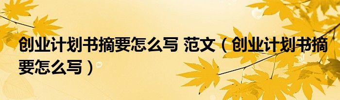 关于创业计划书摘要怎么写 范文,创业计划书摘要怎么写这个很多人还不知道,今天菲菲来为大家解答以上的问题,现在让我们一起来看看吧!