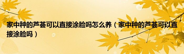 1、家里种的芦荟一般不建议患者直接敷在脸上,脸上的皮肤往往比较娇嫩。
