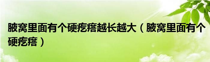 大家好,linda来为大家解答以上的问题。腋窝里面有个硬疙瘩越长越大,腋窝里面有个硬疙瘩很多人还不知道,现在让我们一起来看看吧!