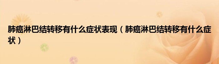 大家好,linda来为大家解答以上的问题。肺癌淋巴结转移有什么症状表现,肺癌淋巴结转移有什么症状很多人还不知道,现在让我们一起来看看吧!