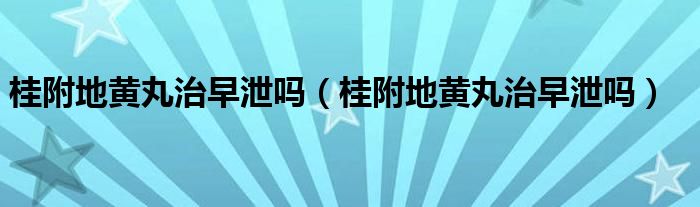桂附地黄丸治早泄吗(桂附地黄丸治早泄吗)