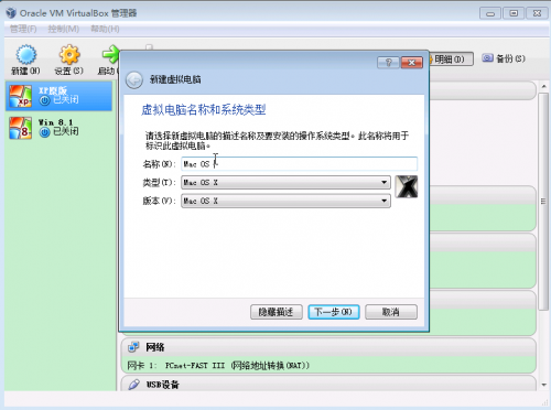 第一步,打开虚拟机,新建虚拟机,命名为MAC OS,类型和版本选择Mac OS,点击下一步。