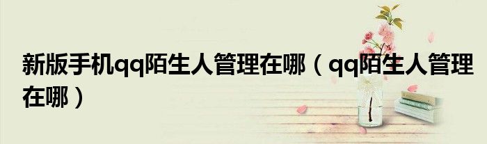 大家好,小晋来为大家解答以下问题,关于新版手机qq陌生人管理在哪,qq陌生人管理在哪很多人还不知道,今天让我们一起来看看吧!