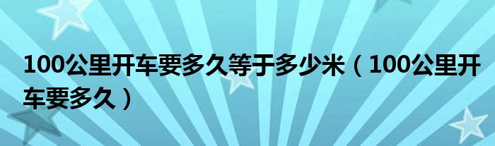 大家好,小晋来为大家解答以下问题,关于100公里开车要多久等于多少米,100公里开车要多久很多人还不知道,今天让我们一起来看看吧!