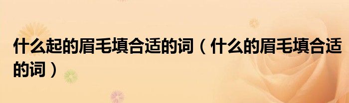 大家好,小晋来为大家解答以下问题,关于什么起的眉毛填合适的词,什么的眉毛填合适的词很多人还不知道,今天让我们一起来看看吧!