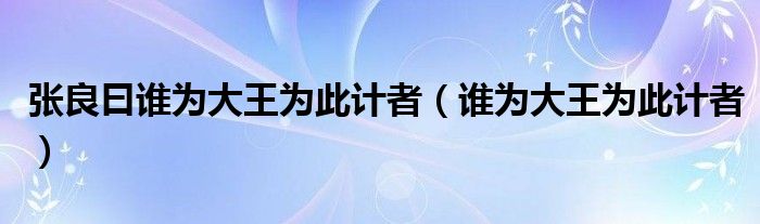 大家好,小晋来为大家解答以下问题,关于张良曰谁为大王为此计者,谁为大王为此计者很多人还不知道,今天让我们一起来看看吧!