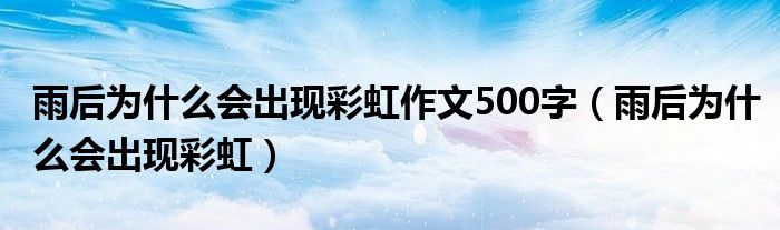 大家好,小晋来为大家解答以下问题,关于雨后为什么会出现彩虹作文500字,雨后为什么会出现彩虹很多人还不知道,今天让我们一起来看看吧!