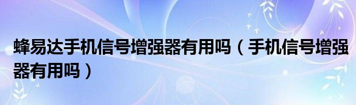 大家好,小晋来为大家解答以下问题,关于蜂易达手机信号增强器有用吗,手机信号增强器有用吗很多人还不知道,今天让我们一起来看看吧!