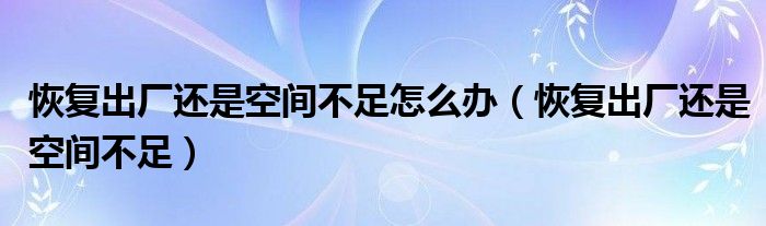 大家好,小晋来为大家解答以下问题,关于恢复出厂还是空间不足怎么办,恢复出厂还是空间不足很多人还不知道,今天让我们一起来看看吧!