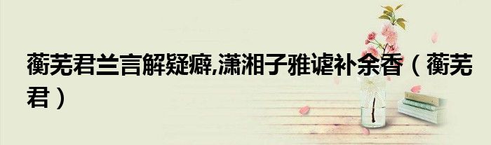 大家好,小晋来为大家解答以下问题,关于蘅芜君兰言解疑癖,潇湘子雅谑补余香,蘅芜君很多人还不知道,今天让我们一起来看看吧!