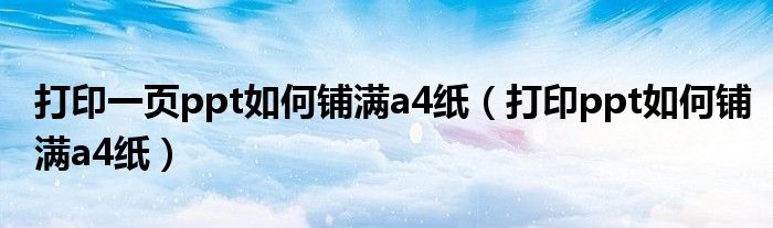 大家好,小晋来为大家解答以下问题,关于打印一页ppt如何铺满a4纸,打印ppt如何铺满a4纸很多人还不知道,今天让我们一起来看看吧!
