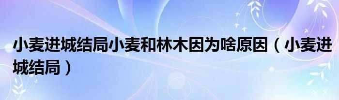 大家好,小晋来为大家解答以下问题,关于小麦进城结局小麦和林木因为啥原因,小麦进城结局很多人还不知道,今天让我们一起来看看吧!
