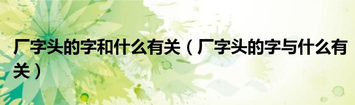 大家好,小晋来为大家解答以下问题,关于厂字头的字和什么有关,厂字头的字与什么有关很多人还不知道,今天让我们一起来看看吧!