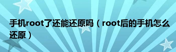 大家好,小晋来为大家解答以下问题,关于手机root了还能还原吗,root后的手机怎么还原很多人还不知道,今天让我们一起来看看吧!