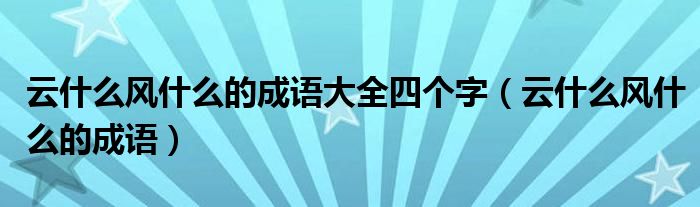 大家好,小晋来为大家解答以下问题,关于云什么风什么的成语大全四个字,云什么风什么的成语很多人还不知道,今天让我们一起来看看吧!