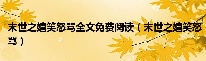 大家好,小晋来为大家解答以下问题,关于末世之嬉笑怒骂全文免费阅读,末世之嬉笑怒骂很多人还不知道,今天让我们一起来看看吧!