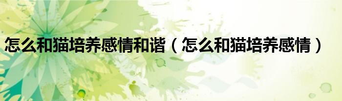 大家好,小晋来为大家解答以下问题,关于怎么和猫培养感情和谐,怎么和猫培养感情很多人还不知道,今天让我们一起来看看吧!