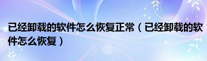 大家好,小晋来为大家解答以下问题,关于已经卸载的软件怎么恢复正常,已经卸载的软件怎么恢复很多人还不知道,今天让我们一起来看看吧!