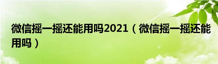 大家好,小晋来为大家解答以下问题,关于微信摇一摇还能用吗2021,微信摇一摇还能用吗很多人还不知道,今天让我们一起来看看吧!