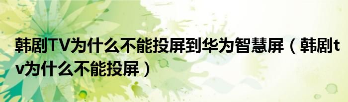 大家好,小晋来为大家解答以下问题,关于韩剧TV为什么不能投屏到华为智慧屏,韩剧tv为什么不能投屏很多人还不知道,今天让我们一起来看看吧!