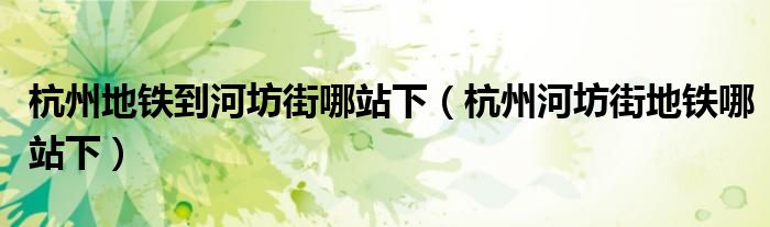 大家好,小晋来为大家解答以下问题,关于杭州地铁到河坊街哪站下,杭州河坊街地铁哪站下很多人还不知道,今天让我们一起来看看吧!