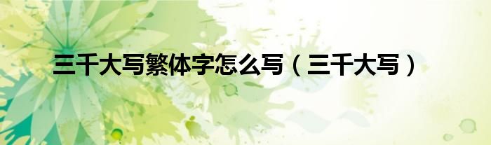 大家好,小晋来为大家解答以下问题,关于三千大写繁体字怎么写,三千大写很多人还不知道,今天让我们一起来看看吧!