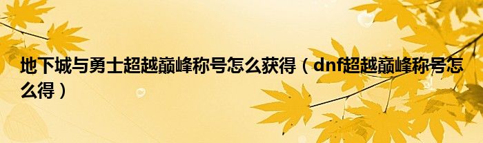 地下城与勇士超越巅峰称号怎么获得(dnf超越巅峰称号怎么得)