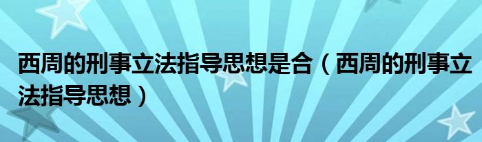 西周的刑事立法指导思想是合(西周的刑事立法指导思想)
