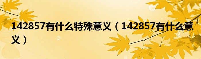 142857有什么特殊意义(142857有什么意义)