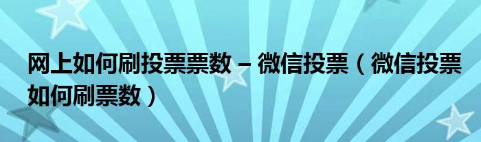 大家好,小晋来为大家解答以下问题,关于网上如何刷投票票数 – 微信投票,微信投票如何刷票数很多人还不知道,今天让我们一起来看看吧!