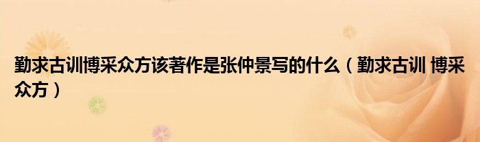 大家好,小晋来为大家解答以下问题,关于勤求古训博采众方该著作是张仲景写的什么,勤求古训 博采众方很多人还不知道,今天让我们一起来看看吧!