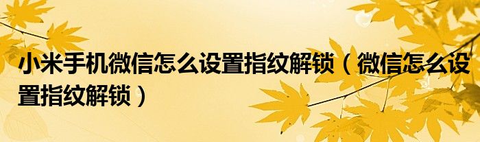 大家好,小晋来为大家解答以下问题,关于小米手机微信怎么设置指纹解锁,微信怎么设置指纹解锁很多人还不知道,今天让我们一起来看看吧!