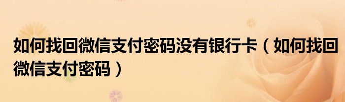 大家好,小晋来为大家解答以下问题,关于如何找回微信支付密码没有银行卡,如何找回微信支付密码很多人还不知道,今天让我们一起来看看吧!