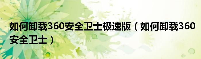 如何卸载360安全卫士极速版(如何卸载360安全卫士)