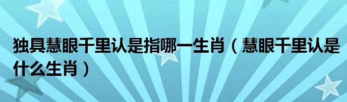 大家好,小晋来为大家解答以下问题,关于独具慧眼千里认是指哪一生肖,慧眼千里认是什么生肖很多人还不知道,今天让我们一起来看看吧!
