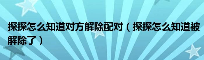 大家好,跳跳为你解答以上问题。探探怎么知道对方解除配对,探探怎么知道被解除了这个问题很多人还不知道,现在让我们一起来看看吧!