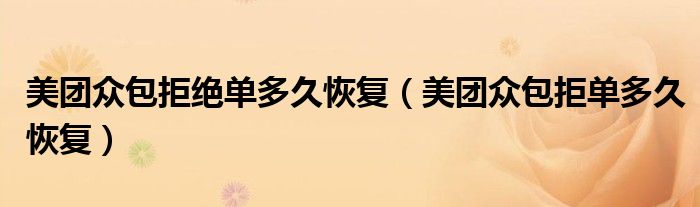 大家好,跳跳为你解答以上问题。美团众包拒绝单多久恢复,美团众包拒单多久恢复这个问题很多人还不知道,现在让我们一起来看看吧!